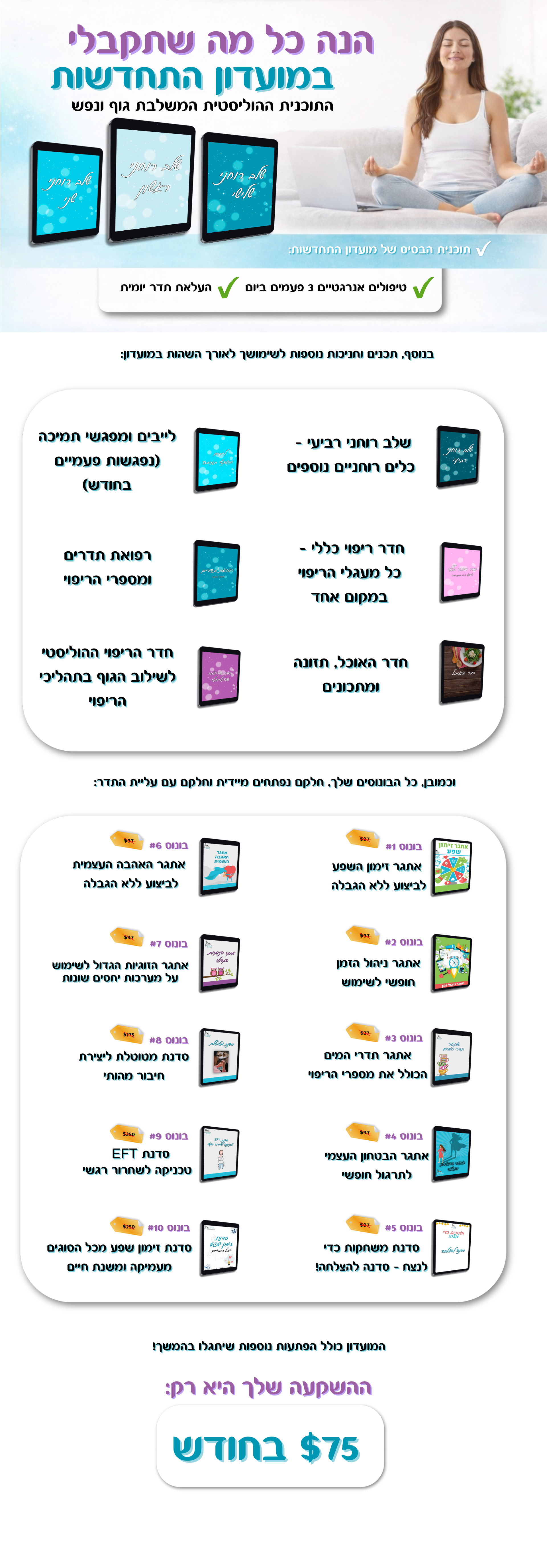 - מעגל ריפוי בכל חודש (שווי כל מעגל - 130$)